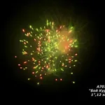 Описание: Знаменитые часы-куранты из Спасской башни Московского Кремля - бой четырнадцати колоколов этих часов известен всему миру. Пиротехники "Русского фейерверка" решили показать красоту перезвона курантов с помощью огненных спецэффектов и создали красочный салют в честь Кремлевских часов. Залп - удар колокола, и в небе разлетаются золотистые стрелы в обрамлении серебристых огней. Еще залп - и зеленая комета расцветает букетом зеленых и лиловых пионов. Удар - и взрыв красной звезды рождает серебристые кокосы с зелеными огнями на верхушках в окружении трещащих, мерцающих огней. Фейерверк "Бой курантов" - звук колоколов, нарисованный огнем! Эффекты: 1. Красные георгины с золотым мерцанием. 2. Золотые короны с зеленым мерцанием. 3. Золотые волны с серебряным мерцанием. 4. Парчовые короны с треском.