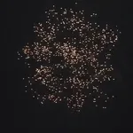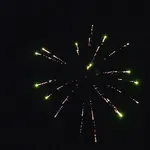 Эффекты: 1. Красные звезды с пышными хвостами (кокос). 2. Зеленые звезды с пышными хвостами (кокос). 3. Множество серебряных ниспадающих нитей (парча). 4. Белая мерцающая сфера (пион). 5. Облако треска (трещащая хризантема).